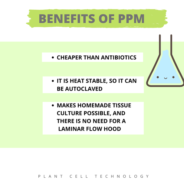 PPM™ is a heat stable preservative/biocide which can be used to effectively prevent or reduces microbial contamination in plant tissue culture.